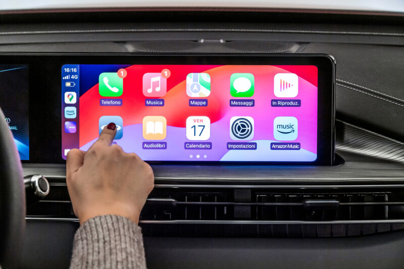 - Display panoramico da 26”, con un quadro strumenti tech per avere tutto sotto controllo e un sistema di infotainment con app dedicate connesso sempre ai tuoi dispositivi, con compatibilità Apple CarPlay e Android Auto.